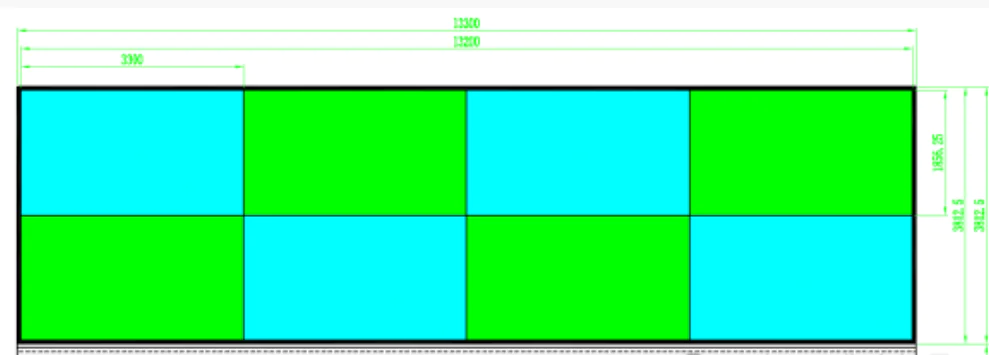 | 1 | LED Display | 1. Pixel pitch: 1.25mm, pixel density: 640,000 dots/㎡; 2. Net display size: 13.2m (W) × 3.7125m (H), pixel resolution: 10560*2970; 3. 16:9 die-cast aluminum cabinet, full front maintenance; 4. Brightness uniformity ≥99%, color signal processing bits ≥24 bits, base color wavelength error ≤0.1nm, contrast ratio >10000:1, color temperature adjustable from 2000-10000K; 5. For indoor long-term viewing, display calibration brightness or white balance brightness ≥600nit(cd), brightness adjustable from 0-100%, horizontal and vertical viewing angles ≥175°, refresh rate ≥3840HZ, grayscale level: 16bit; | 49㎡ |