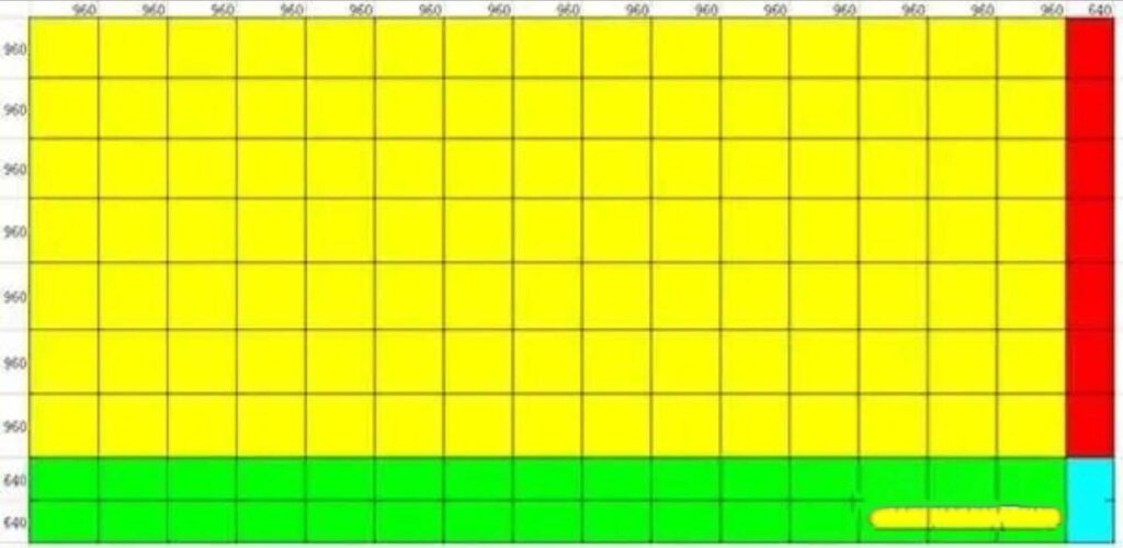 Let’s scale up to a 120.32㎡ display. It measures 15.04m in length and 8m in height. The calculation logic remains the same, but we’ll see how transmitter card needs change with size.