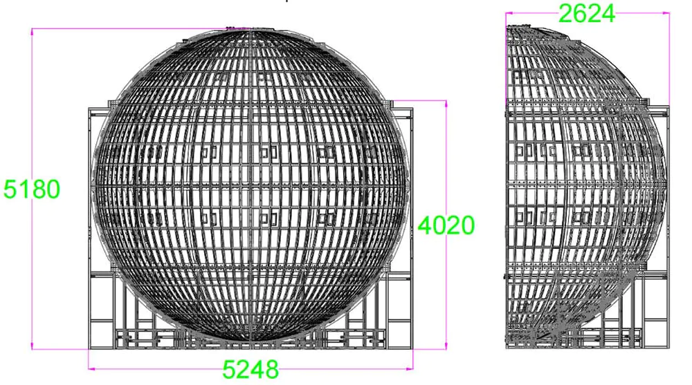 – 1.5-meter diameter: For a larger sphere with an area of 7.065 square meters, a P2.0 screen would fall between $10,597 and $14,130. However, if you choose a P4 screen, the cost would be significantly lower, around $7,065 to $10,597.