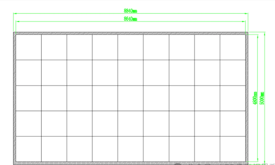 - The net display area measures 8.64m (width, 9 unit cabinets) × 4.8m (height, 5 unit cabinets), totaling approximately 41.47㎡.