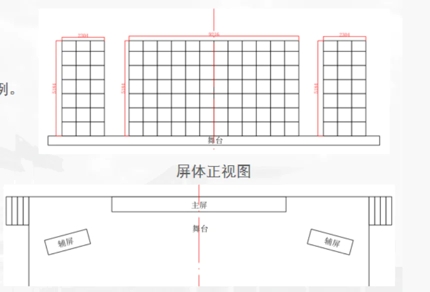Installation height recommendation: Since the entire screen is 4000mm high, it is recommended to hang it 1.5-2 meters from the top, so that the front screen is just in the middle of the first and second floor auditoriums.